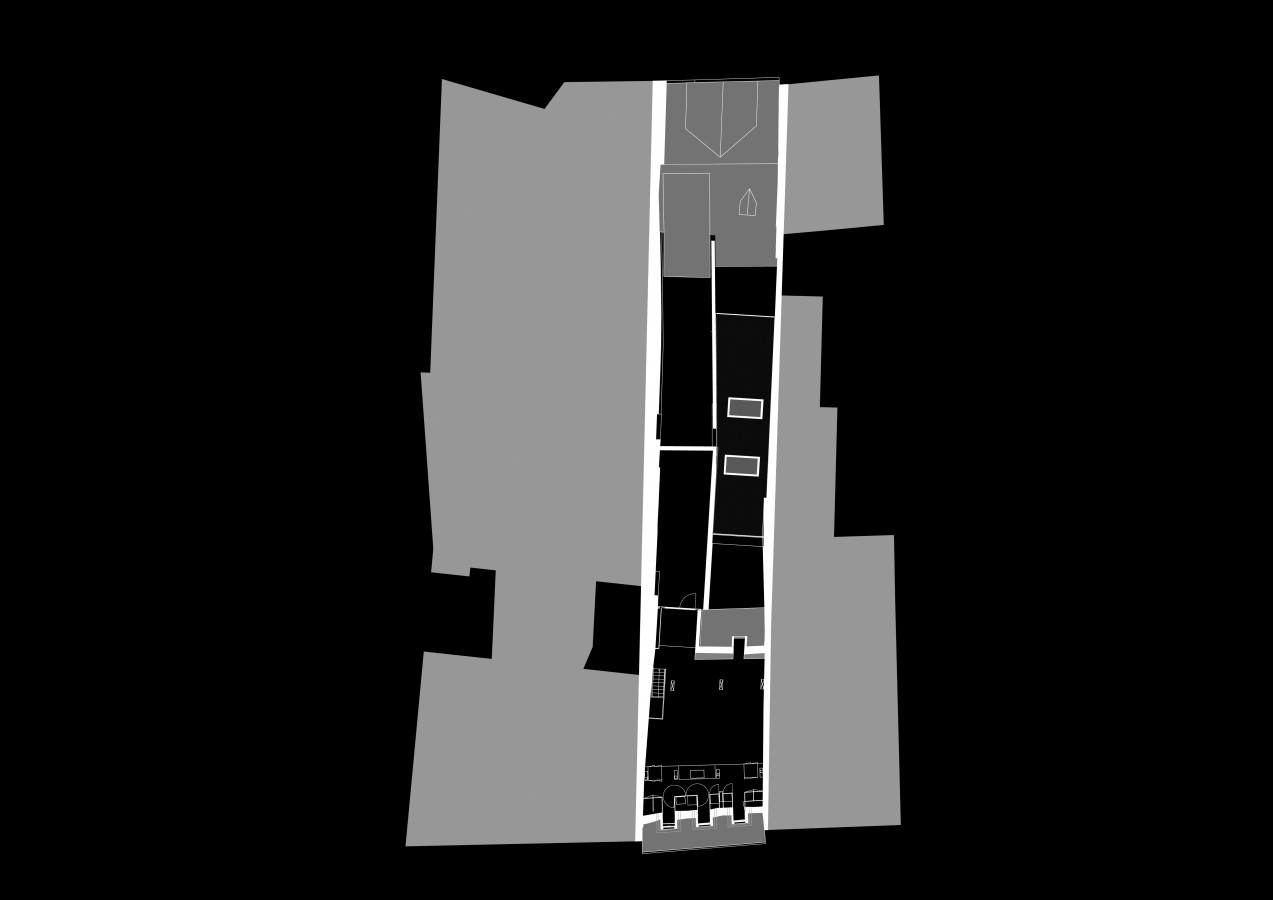 als schmales und langen gesamtprojekt mit zwei gebäuden mit verschiedenen innenhofebenen.