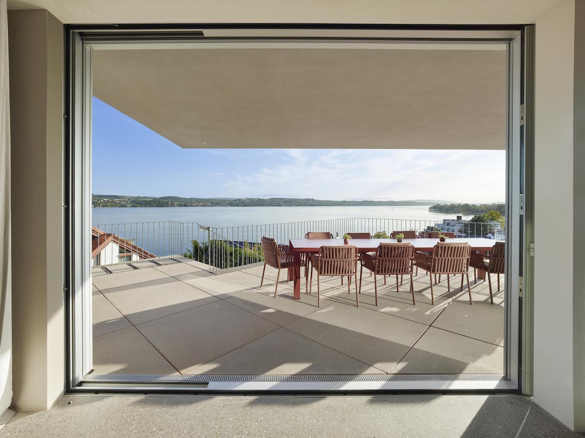 das wohnhaus am bodensee liegt markant auf einer oberen steilhangkuppe mit weitem blick über den see und in die angrenzende waldlandschaft. die topographie fällt in ostwestrichtung um ca. 6 m ab.