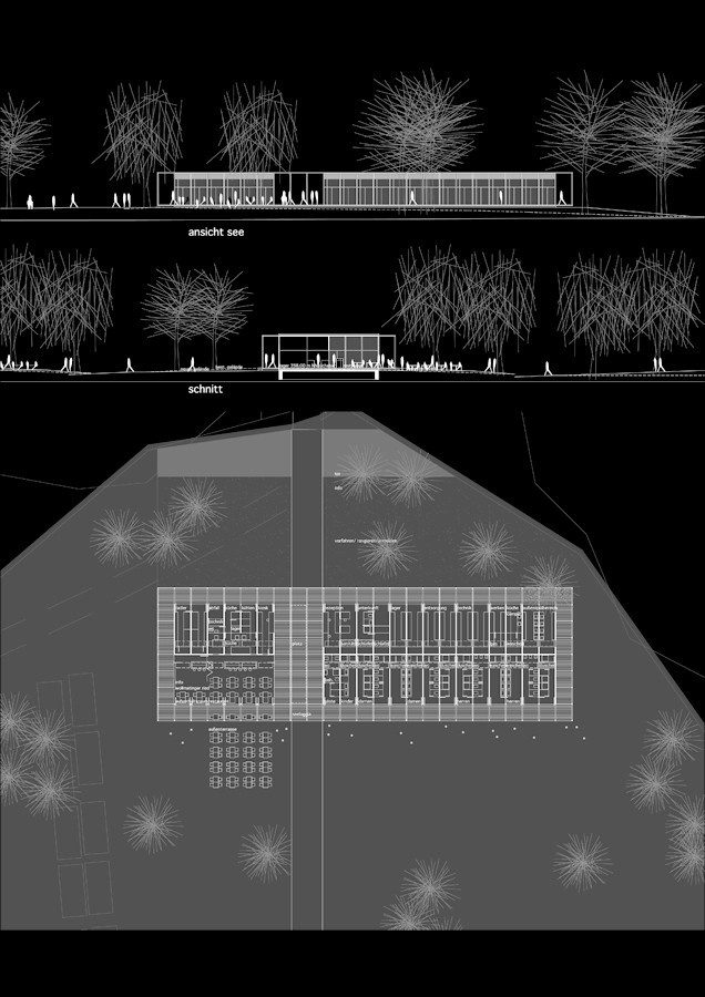 der landschaftsraum am bodenseeufer stellt mit den notwendigen kleinarchitekturen eine einheit dar, mit dem ziel, das bodenseeufer als erlebbarer naturraum frei zu halten. daher werden die infra-struktureinrichtungen wie intarsien umweltvertäglich und mit schlicht gehaltene elemente werden entwickelt. im vordergrund steht der grundsatz der einfachheit, die eleganz und die identität des ortes sowie des landschaftsraumes, so wenig wie möglich zu tangieren, lediglich das große landschaftserlebnis am bodensee einen naturverbundenen ort, um das naturerlebnis darzustellen. sichtlinie vom kloster hegne auf die insel reichenau zur kirche st. georg der übergeordnete landschaftsbezug orientiert sich an der sichtlinie vom kloster hegne über den bodensee zur insel reichenau als sichtachse. der standort des campinghauses folgt der topografie der uferlinien bewusst wird das gebäude des campinghauses den uferlinien des bodenseeufers so gesetzt, dass der gesamte uferbereich geöffnet wird für den freien blick zum gegenüberliegenden ufer mit dem langen pappelband.