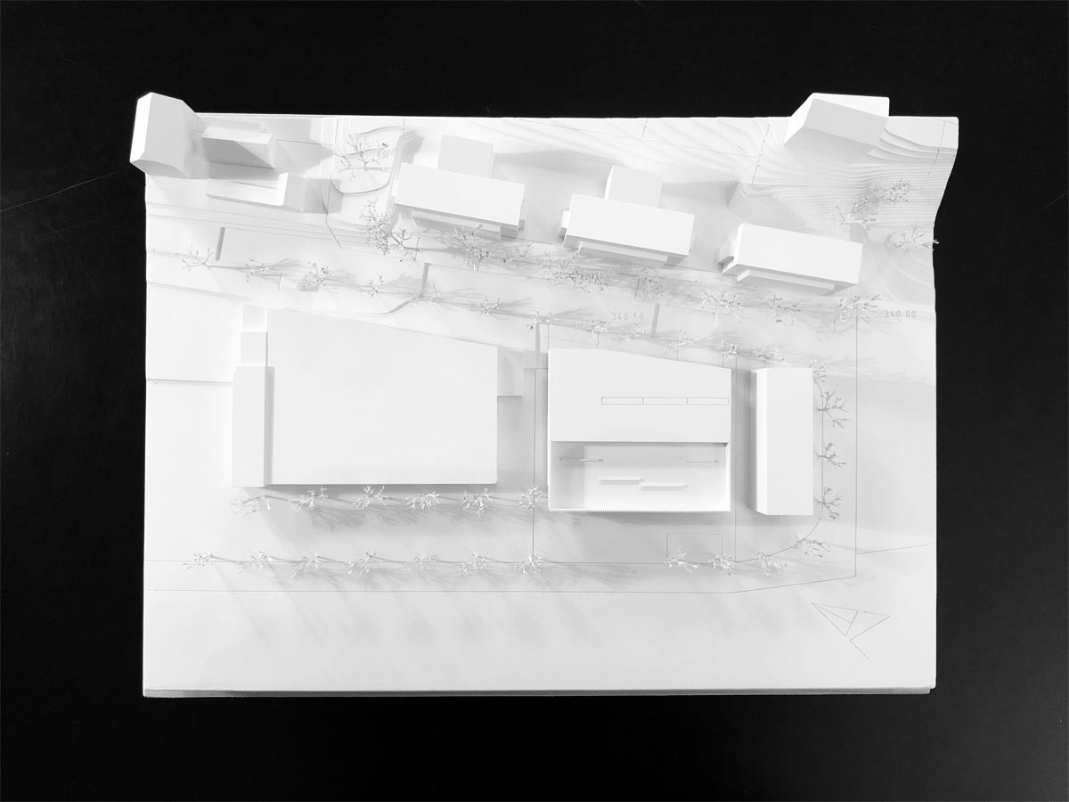 es entsteht eine großzügige funktionseinheit mit einem wechsel von kompakten gruppenclustern zu den außenanlagen nach südwesten ausgerichtet und flexiblen fließenden großzügigen raumeinheiten - mehrzweckraum, bistro, malatelier - nach osten.