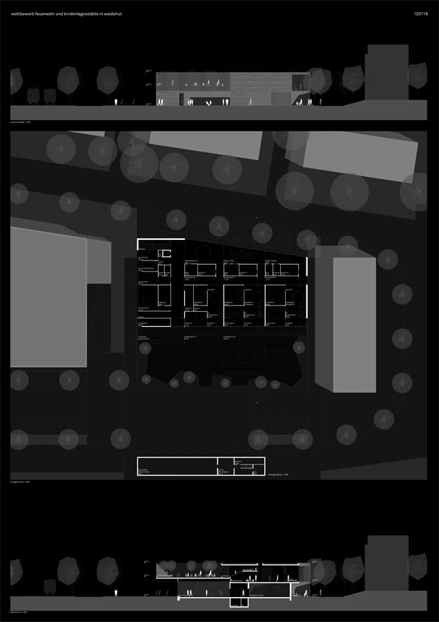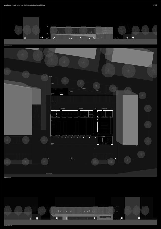 die feuerwehr wird im westlichen grundstücksteil auf einem geschoss entworfen, dies
