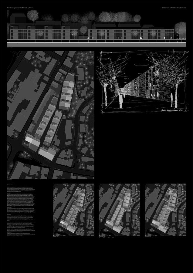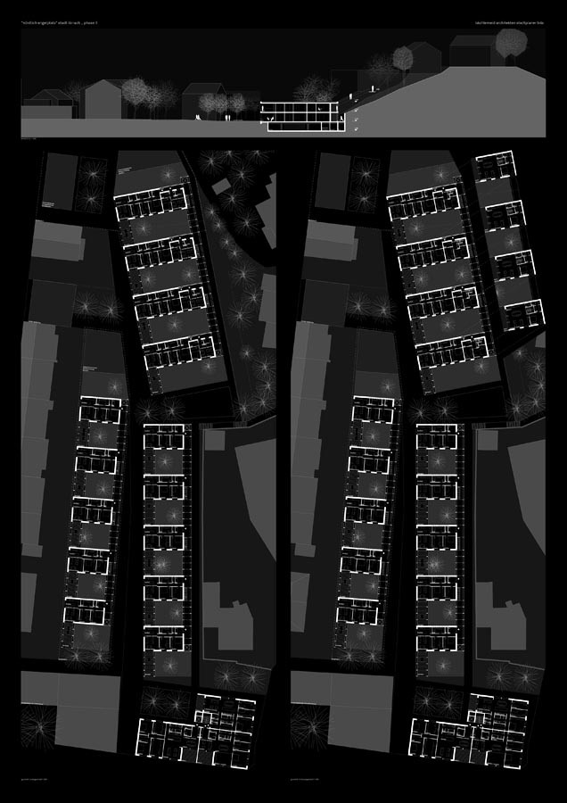 auf den grundstücken der weiteren eigentümer werden weitere drei unabhängige bauabschnitte vorgeschlagen, die gesamthaft das gesamtkonzept aufzeigen.