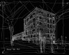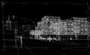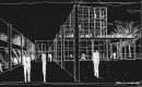 temporär und fragmentarisch wirkenden gebäudehülle aus