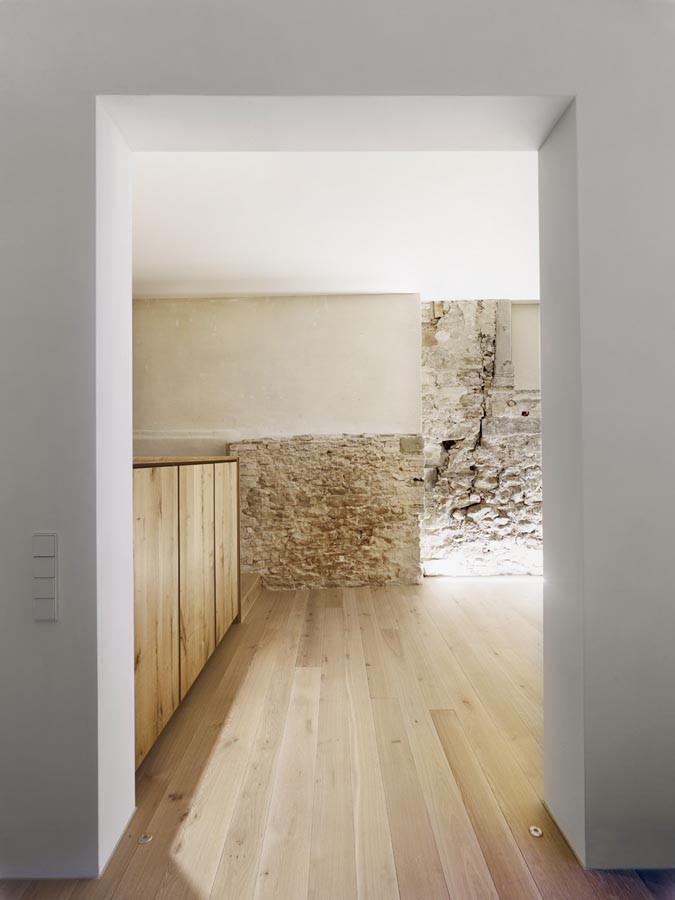 durch das herausschälen der historischen bauelemente, an den fehlstellen das sorgfältige hinzufügen von modernen,