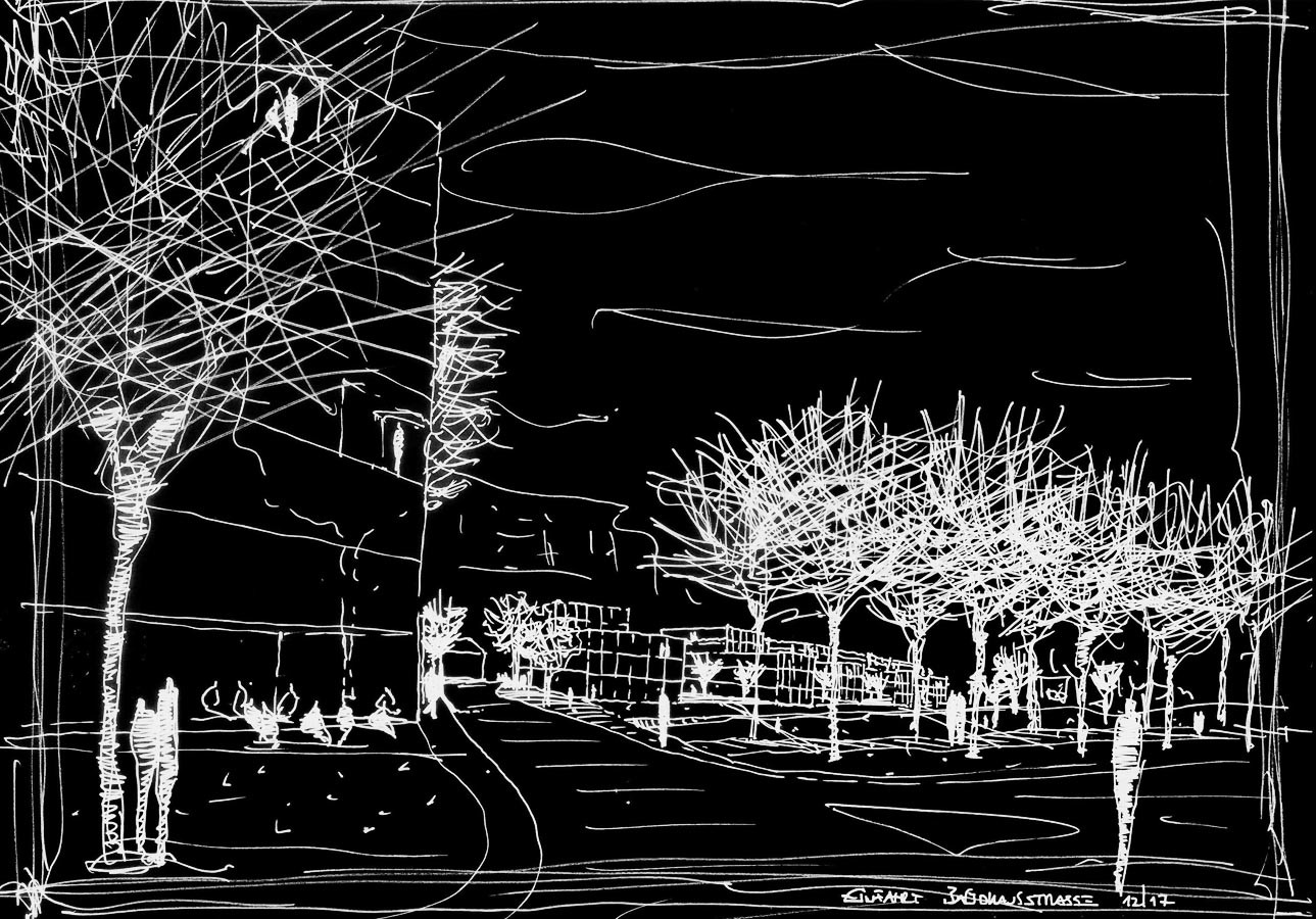 auf der ostseite der oos wird die raumkante gegenüber der straße gestärkt.