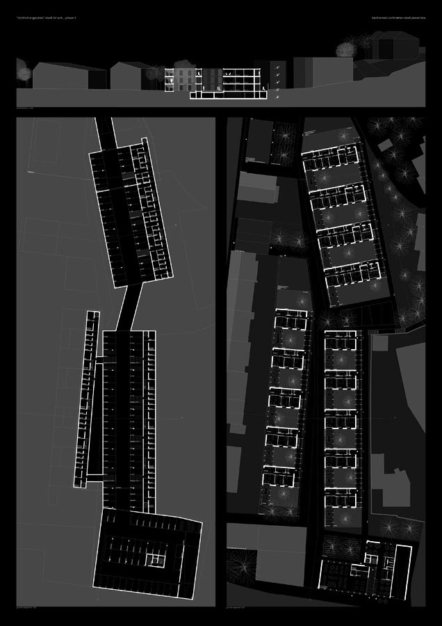 auf den grundstücken der weiteren eigentümer werden weitere drei unabhängige bauabschnitte vorgeschlagen, die gesamthaft das gesamtkonzept aufzeigen.